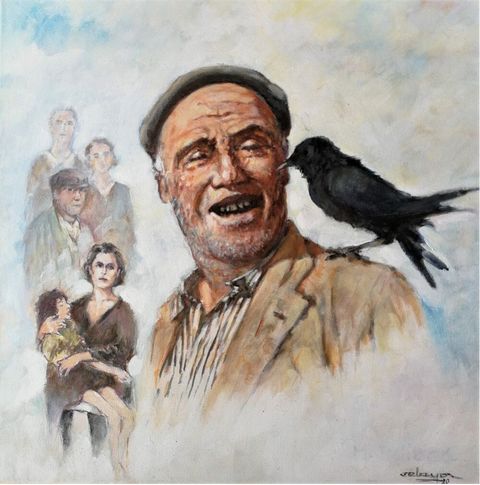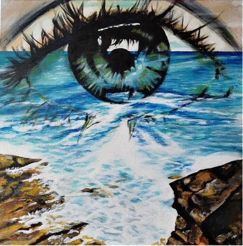 La emociones producidas por las distintas situaciones por las que pasa una familia en un clima político y social en crisis afloran sentimientos de tristeza, alegría, desesperación, y nostalgia de un tiempo pasado mejor, o peor para algunos. Por eso en mi obra basada en este libro, intento expresar algunos de ellos (rabia, euforia, alegría, tristeza), en una fusión de el ser representado por el ojo y las circunstancias con un paisaje marino, entorno de una parte de la novela, donde la tramontana de las islas Baleares juega un papel emocional importante.